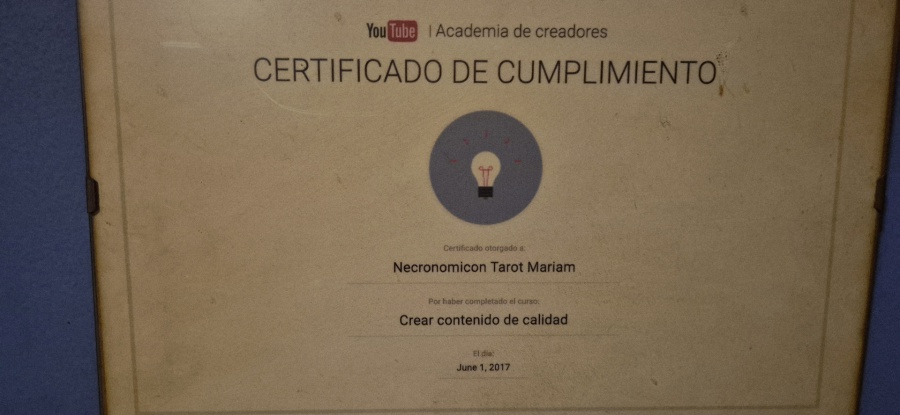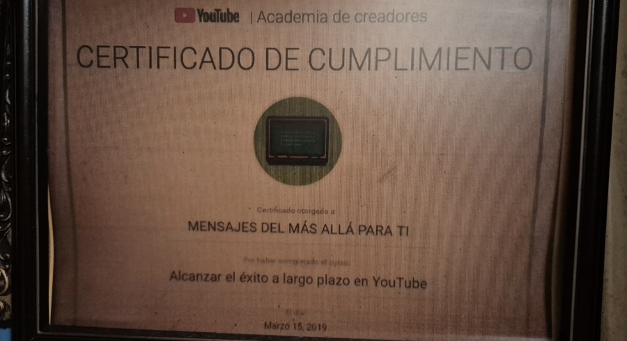 CERTIFICADO YOUTUBE "MENSAJES DEL MÁS ALLÁ PARA TI" POR CONOCIMIENTOS DE PRODUCCIÓN